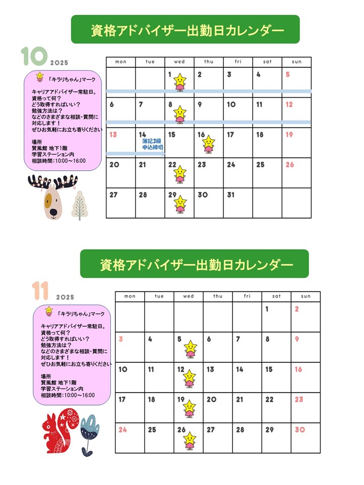 ※詳しい開室日は「開室カレンダー」を確認ください。