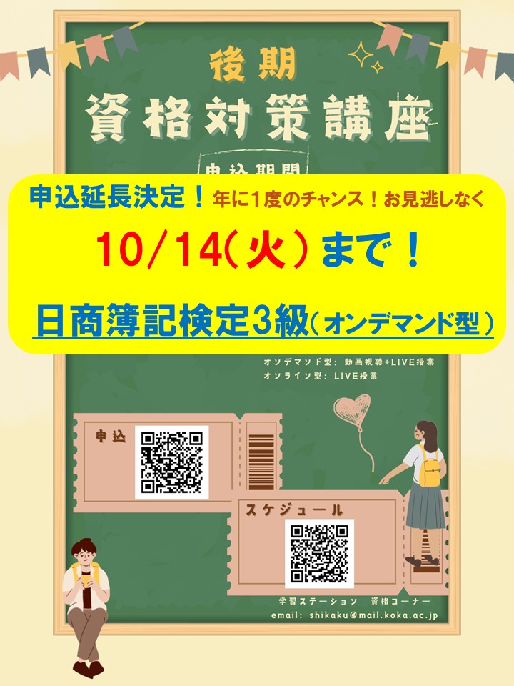 ⚡日商簿記3級 申込延長決定!10/14まで!⚡